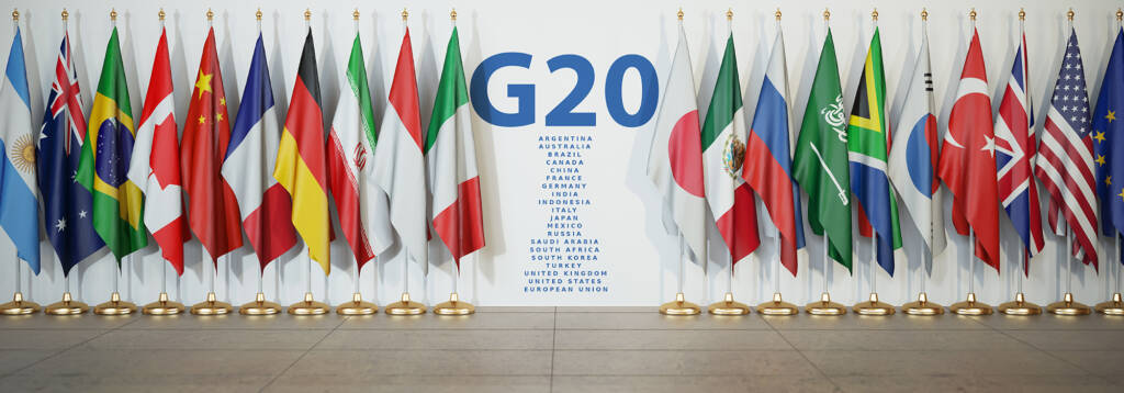 The G20 or Group of 20 is an intergovernmental forum comprising 19 sovereign countries, the European Union (EU), and the African Union (AU). It works to address major issues related to the global economy, such as international financial stability, climate change mitigation and sustainable development.